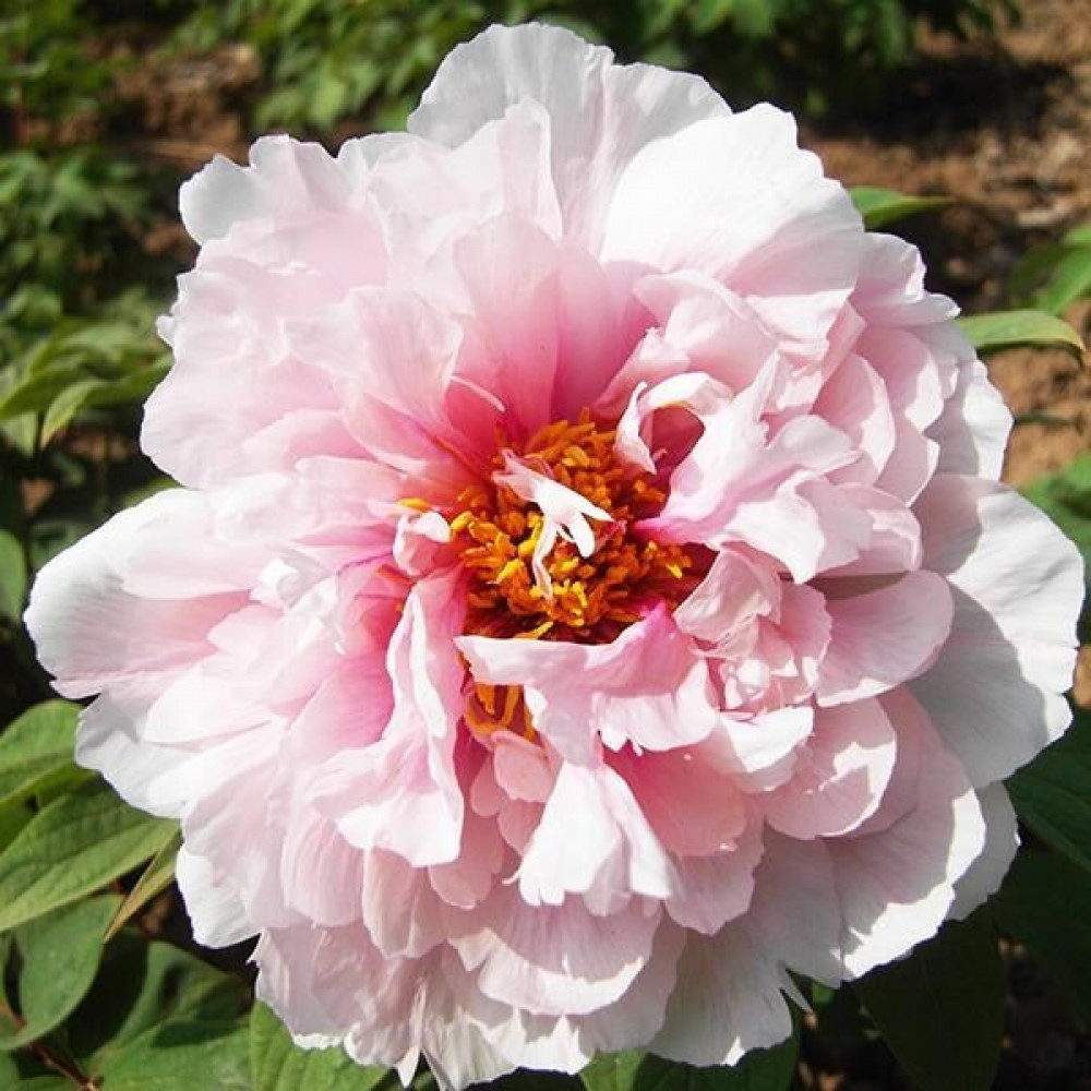 Обилие крупных махровых цветков с тонким ароматом на высоком кусте. Волнистые лепестки розовые у основания, и почти белые по краям. Недаром второе название сорта - "Цветы персика, укрытые снегом". По форме цветок похож на большой и пышный восхитительный помпон. Цветет в середине сезона. Корень пиона привит на травянистый.