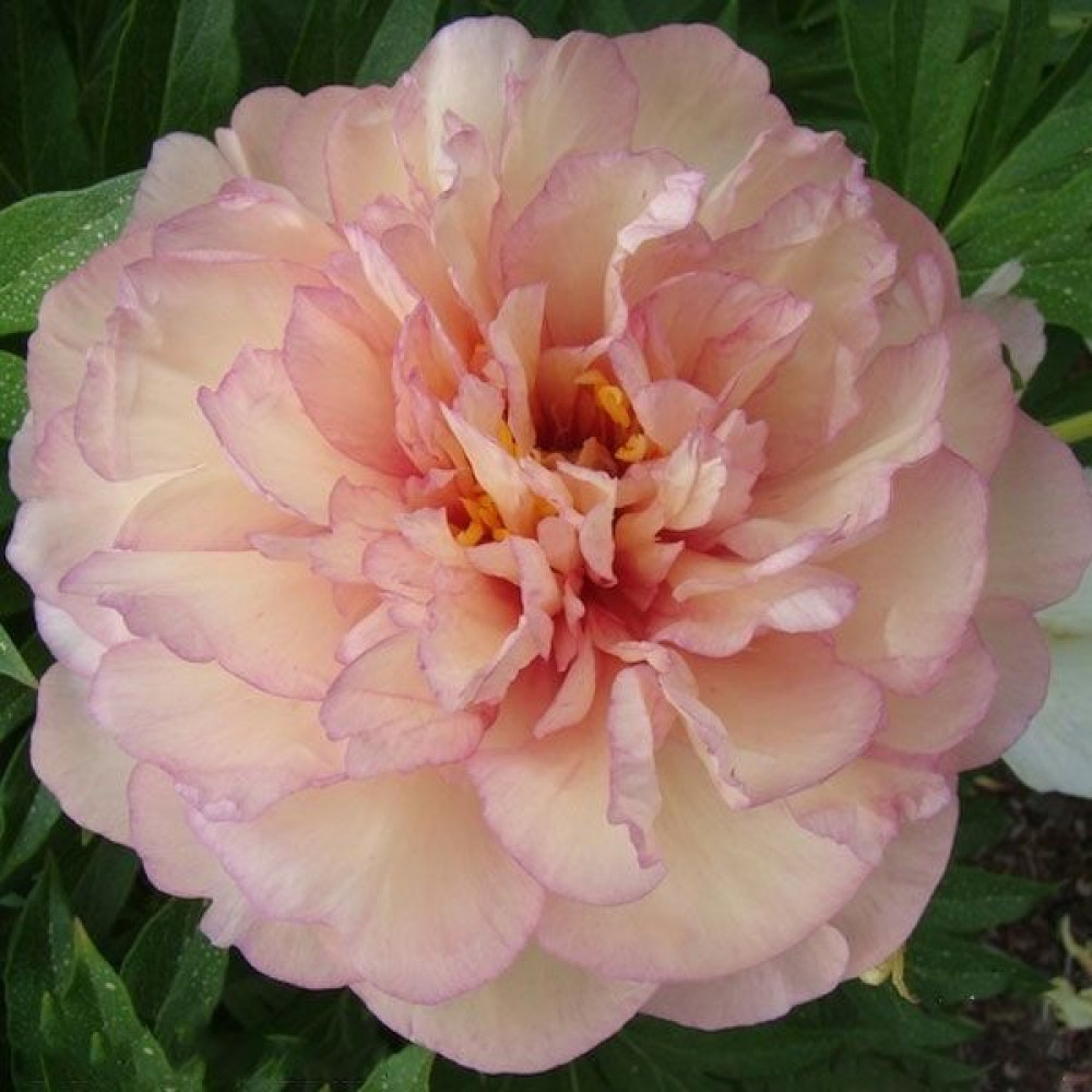 Эффектное многолетнее растение. Цветки с различными оттенками: вначале светло-бежевый, затем мягкого желто-розового цвета, в основании лепестков красные пятна. Листья пиона крупные, зеленые, декоративные. Куст компактный. Восхитительно будет смотреться в групповых и одиночных посадках на газонах и цветниках. Используется также для создания букетов.