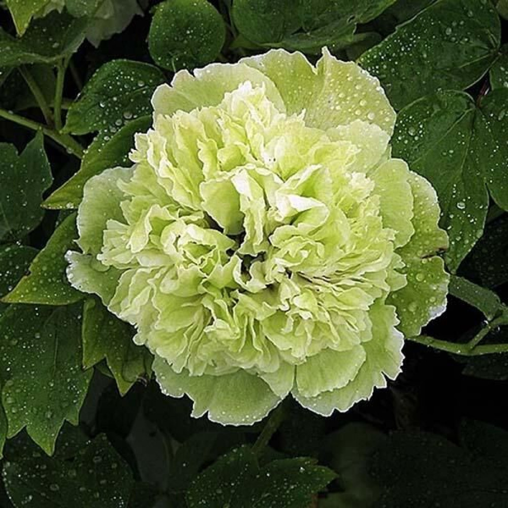 Эксклюзивный позднецветущий сорт. Отличается потрясающим лёгким ароматом. Пион Зеленые Бобы - это невысокий кустарник с длинными яркими листьями и небольшими нежными цветками, обильно покрывающими весь куст. Цветки махровые или полумахровые, шарообразные, нежного зелёного цвета с гофрированными волнистыми лепестками. Корень пиона привит на травянистый.
