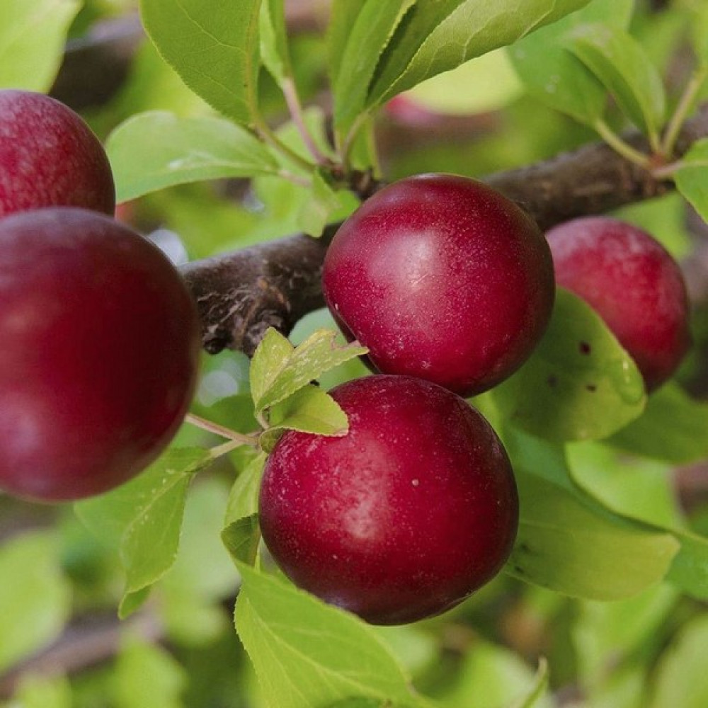 Этот гибрид достаточно сложный, межвидовый. Пожалуй, главным достоинством сливы Евразия можно назвать зимостойкость. Плоды округлой формы, их масса может достигать 30 г. Окрас сливы бордовый, восковой налет плотный, внешний вид достаточно привлекателен. Мякоть желто-оранжевого цвета, плотная, сочная, ароматная, с кисло-сладким вкусом.