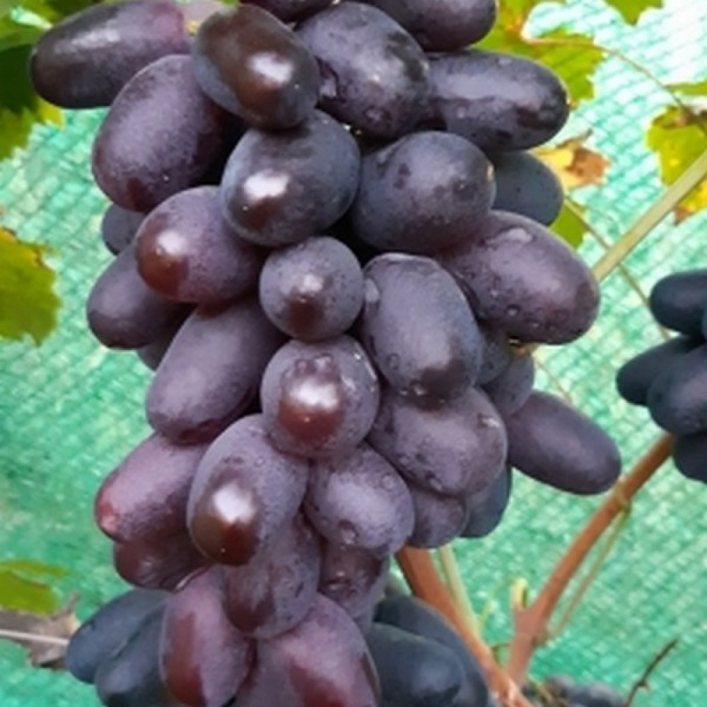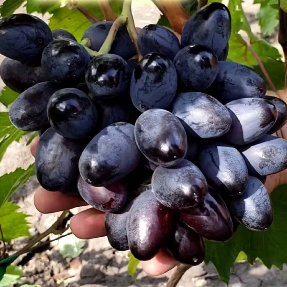 Крупноплодный столовый сорт, известный своей неприхотливостью. Среднеранний Богатырь не требует сложного ухода, а плодоносить начинает в конце августа. Его объемные цилиндрические грозди достигают веса 0,7-2 кг и отличаются хорошими вкусовыми характеристиками. В стадии полной спелости плоды черно-синего оттенка, с мягкой кожицей и мясистой плотной мякотью. Вкус гармоничный, в меру сладкий, кислинка сбалансирована.