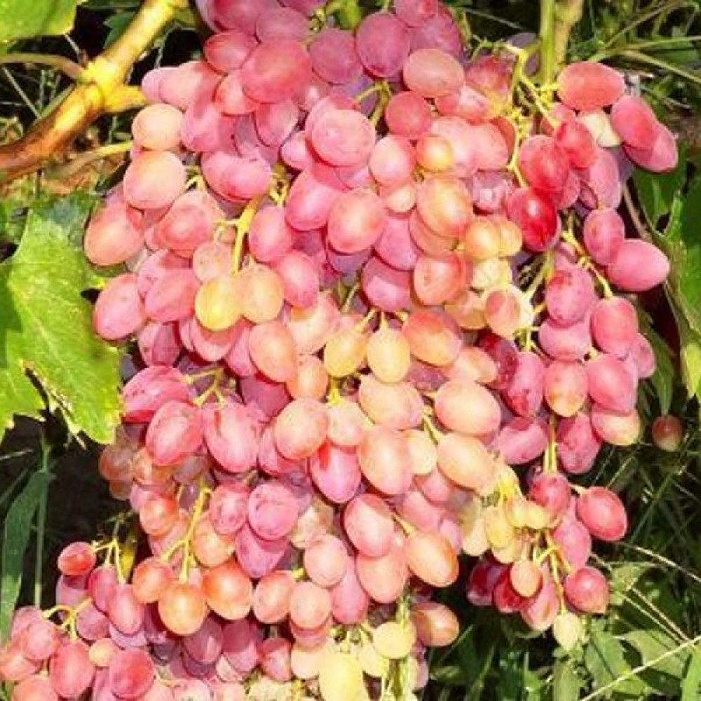 Лучистый – это среднеспелый столовый сорт винограда с объемными листьями и мощными побегами. Формирует крупные рыхлые грозди (0,4-1,2 кг), структура которых напрямую зависит от погодных условий. Спелые виноградины кисло-сладкого вкуса, в меру сочные, освежающе-приятные. Под плотной кожицей темно-розового оттенка прячется мясистая мякоть, зачастую без семян. В среднем, урожайность сорта колеблется в пределах 100-120 ц/га или до 35 кг с куста, при этом не последнюю роль играет густота посадки.