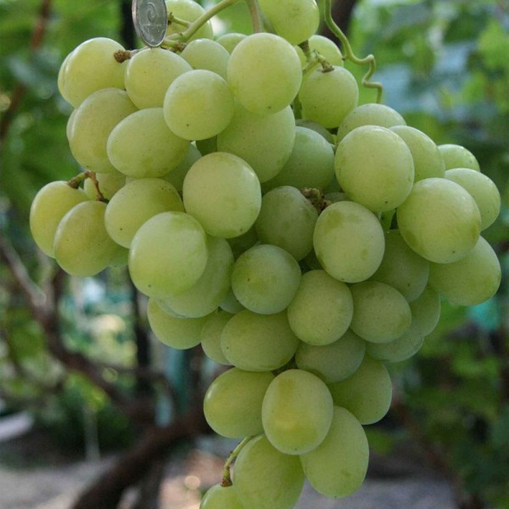 Виноград столового назначения со светло-зелеными ягодами, собранными в конические грозди. Средний вес кисти – 0,8-1 кг. Сорт ранний (117-125 суток), сильнорослый, высокопродуктивный. Крепкая лоза светло-коричневая или светло-зеленая, усыпана крупными листьями; вызреваемость побегов на хорошем уровне. Сочные мясистые ягоды обладают хорошим вкусом с мускатным ароматом и послевкусием.