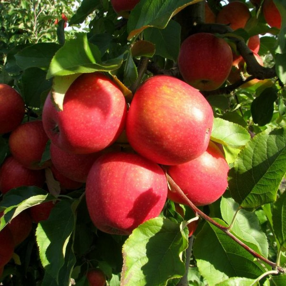 Яблоня Пинова – один из самых скороплодных сортов: вступает в плодоношение на второй год после посадки. Дерево растет быстро, крона компактная, сбор урожая максимально удобен. Конусообразные плоды одномерные, крупные, с розовато-красным окрасом кожицы. Мякоть сочная, хрустящая, приятного сладкого вкуса.