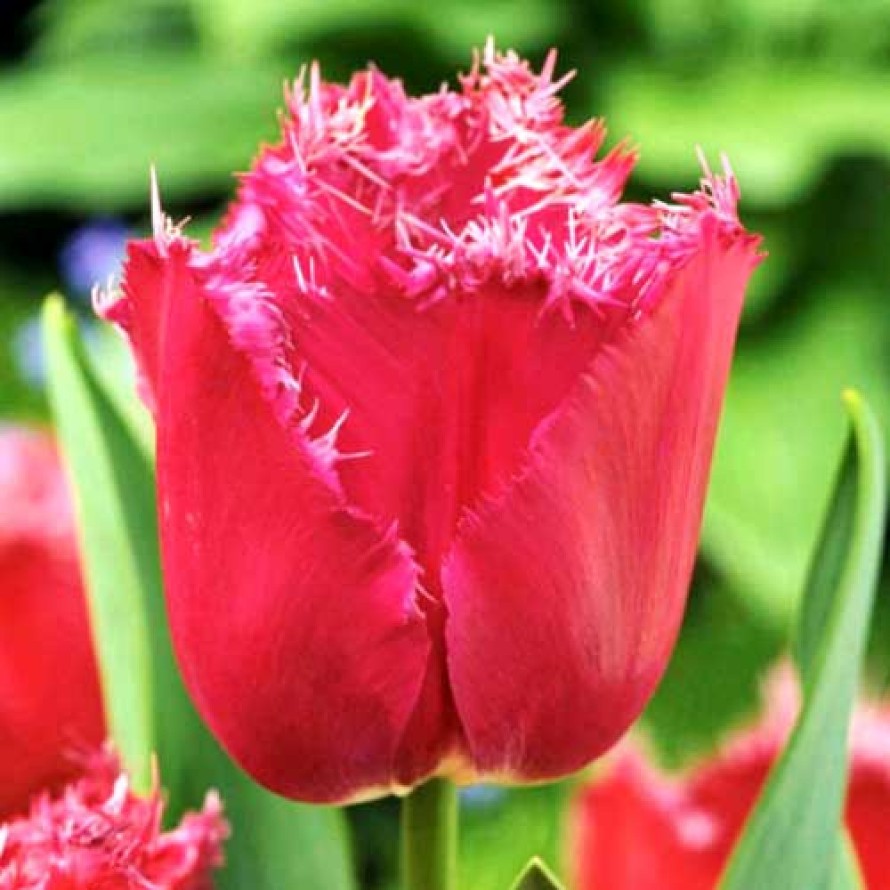 Тюльпан бахромчатый Мустанг - эффектный многолетник с винно-красными цветами, украшенными по краю густой бахромой. Высота варьируется от 50 до 80 см, тюльпан Мустанг – отличный сорт для выращивания на срезку. Цветы крупные, высота бокала достигает до 8 см.