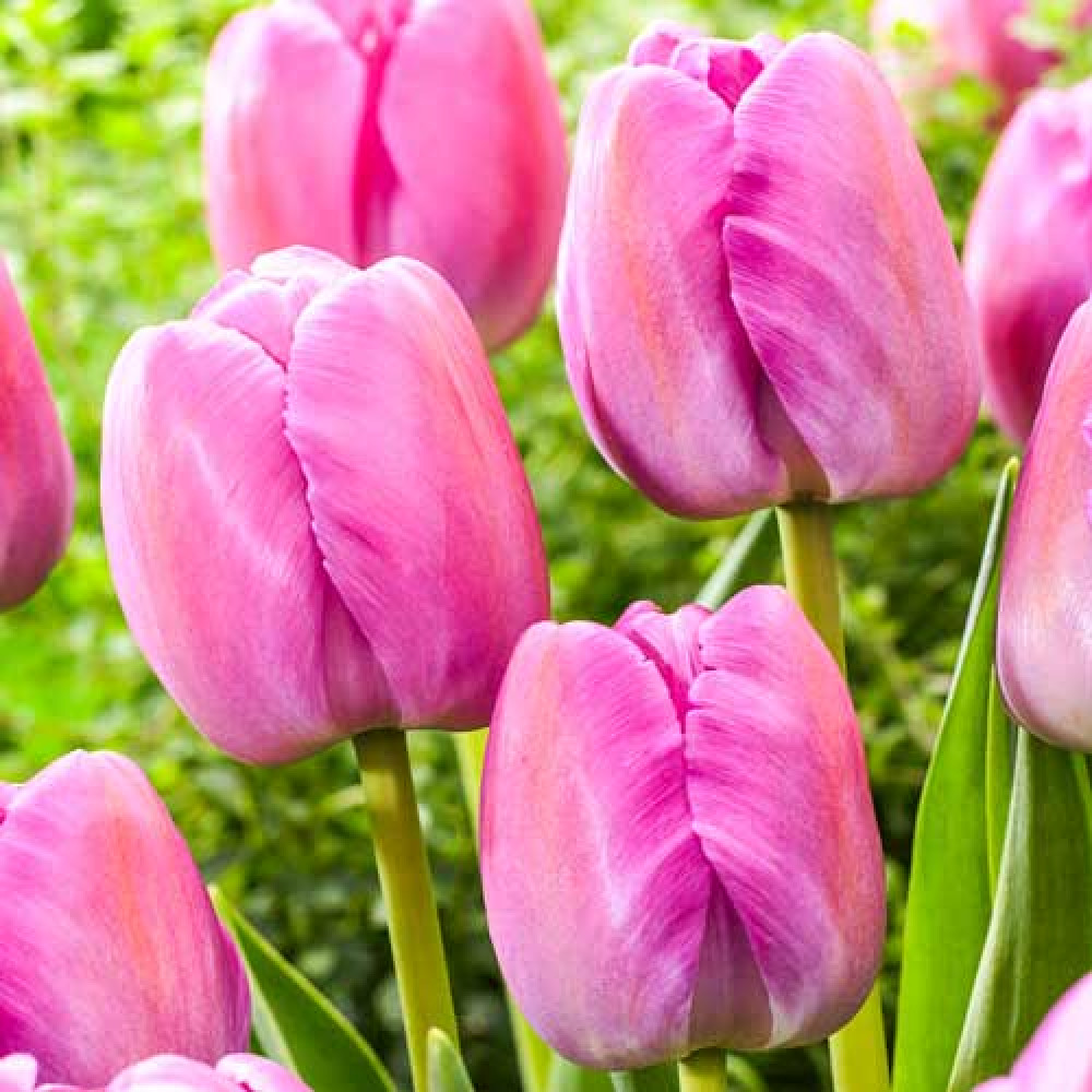 Тюльпан Дарвина Пурпл Прайд – эффектный лиловый цветок с полосой лососевого оттенка, к концу цветения окраска немного линяет, превращается в розовую. Чтобы цвет лепестков проявил всю сортовую красоту необходимо выращивать растение на почве с нейтральной или слабокислой реакцией. Высота 60 см.