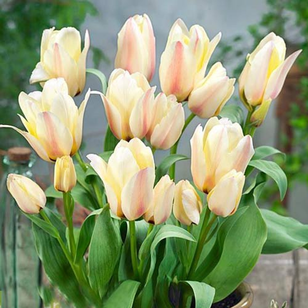 Удивительно нежный сорт - относится к классу ботанических тюльпанов Грейга. Цветок имеет крупный бокал нежно-кремового тона с перламутровыми переливами. В горле тюльпана темное контрастное пятно, обведенное тонким кантом канареечно-желтого и оранжевого цветов.