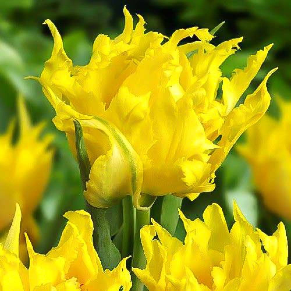 Эффектные тюльпаны Monte Spider имеют яркую пронзительно-желтую окраску и невероятно привлекательную форму. Изящные махровые цветы с лепестками, напоминающими лилию – очень эффектно смотрятся в садовых клумбах. Цветение наступает в течение мая, высота цветоносов – около 50 см.