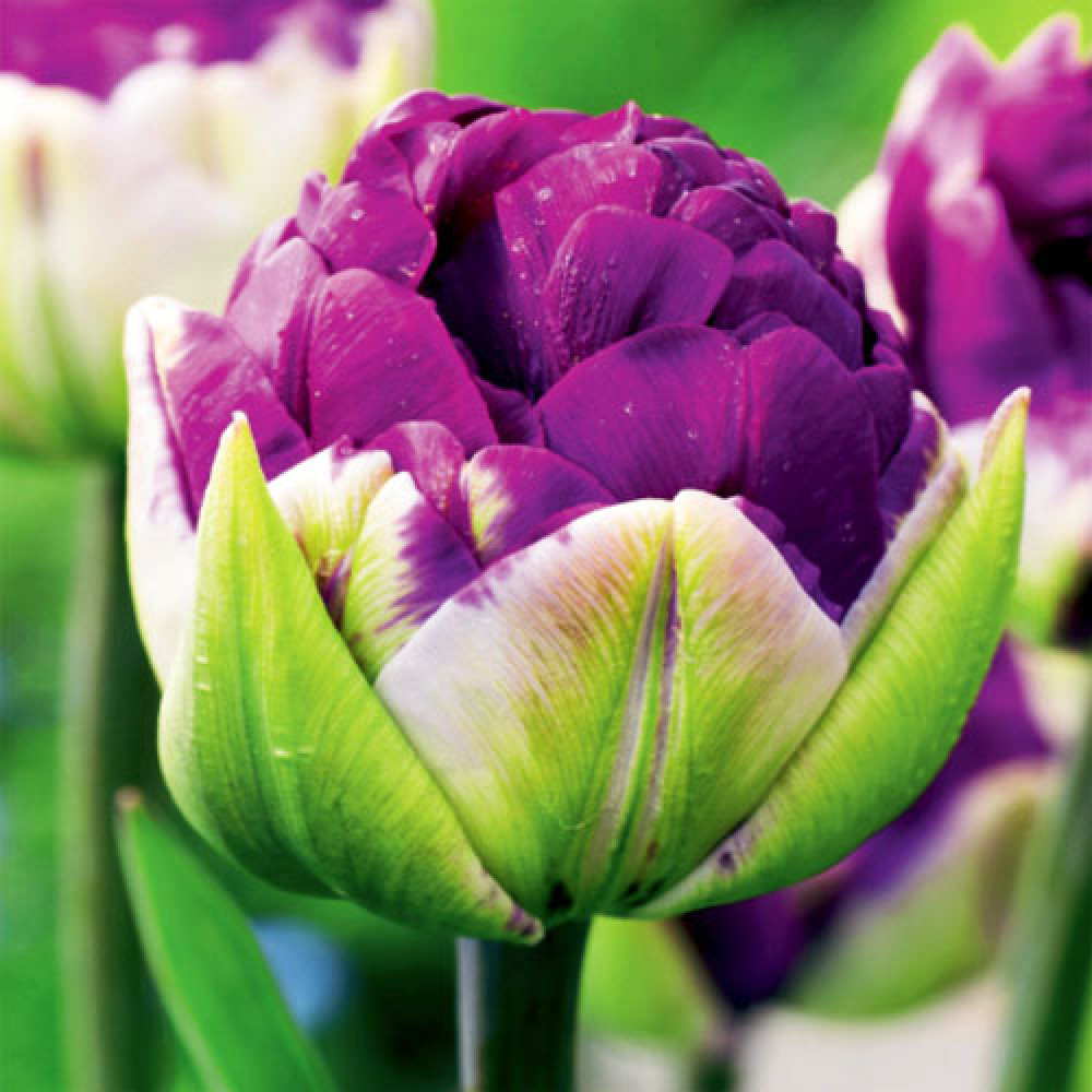 Тюльпан махровый Негрита Дабл — очень яркий бордово-фиолетовый сорт с крупными пионовидными цветками диаметром 15 см и более. Лепестки округлой формы с зелеными перьями. Бутон медленно раскрывается, поэтому цветение продолжается более 3 недель. Растения роскошно смотрятся на клумбе, подолгу стоят в срезке, посадочный материал готов к выгонке. Цветет на 2 недели позже обычного — в мае.