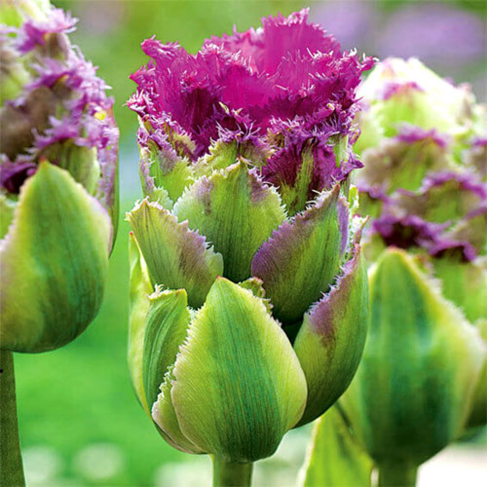 Тюльпаны не только изумительны по внешнему виду, но и абсолютно неприхотливы. Среди великолепия разнообразных сортов Пурпл Тауэр выделяется высоким многоярусным бокалом зеленого цвета с густыми малиновыми лепестками, бахромчатыми по краю. Роскошное жабо красавца-щеголя, вот такое впечатление оставляет этот цветок.