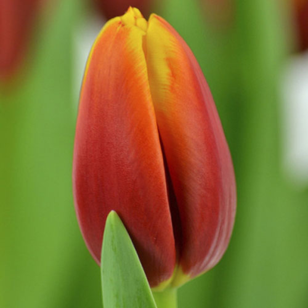 Тюльпан Андре Ситроен из группы Триумф радует солнечной яркостью красок. Его алые лепестки с желтой окантовкой слегка закруглены по краям, что придает цветку трогательный вид. Растение используется для украшения клумб, подходит для зимней выгонки и выращивания на срезку.