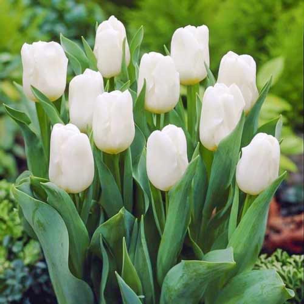 Тюльпан Триумф Антарктика – это раннецветущий сорт с остроконечными листьями и белоснежными бокаловидными цветами. Высота цветоносов – от 40 до 60 см. Диаметр цветка – от 7 до 9 см. Сорт используется для украшения садовых цветников, выгонки, выращивания для букетной срезки.