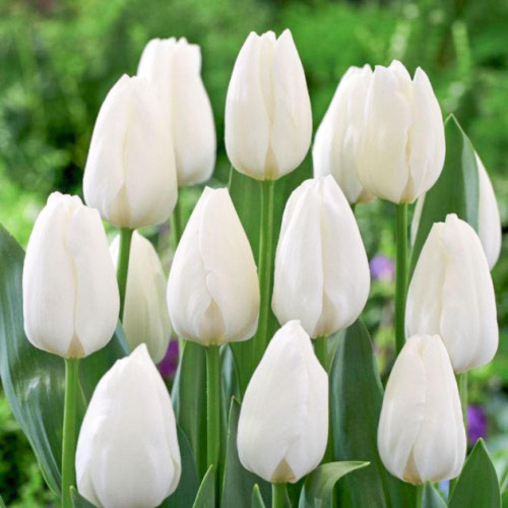 Тюльпан Роял Вирджин с классическим белоснежным бокалом пленяет лаконичной красотой. Цветение происходит в апреле-мае. Растение идеально смотрится в групповых посадках с тюльпанами других оттенков, используется для украшения цветников и бордюров, выращивается на срезку.
