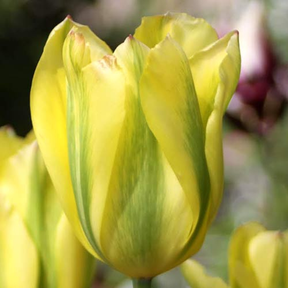 Тюльпан зеленоцветковый Формоза – элегантный сорт с уникальной расцветкой бутонов. Лепестки заостренные, ярко-жёлтого цвета, по спинке проходит зелёная широкая полоса. Цветоносы прочные, высокие – сорт идеально подходит для составления эксклюзивных букетов и оформления садовых клумб. Высота – до 60 см. Срок цветения – вторая половина мая.