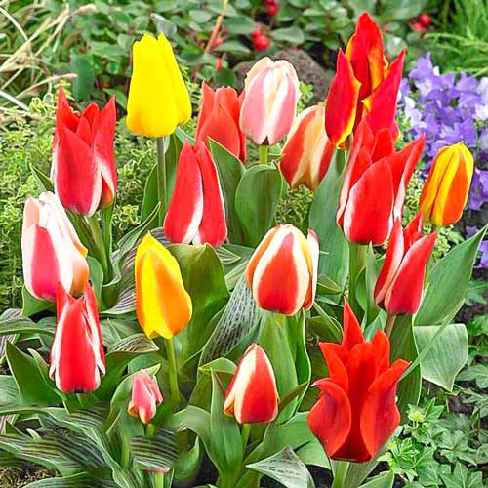 Луковицы Tulips Mixed до отправки находятся на прохладном хранении, где накапливают силы для бурного роста, поэтому одинаково хорошо подходят для открытого грунта и горшечной выгонки. В саду оптимальное время высадки наступает осенью по мере остывания почвы приблизительно до +8 градусов. Заглубление определяется размером луковицы и составляет три ее диаметра. При первой посадке никакой предварительной подготовки почва не требует. Для получения насыщенной окраски цветков место для клумбы должно быть солнечным.
