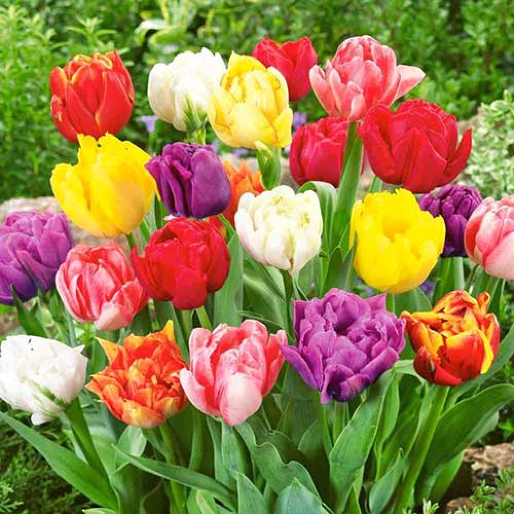 Зачем долго мучиться, подбирая эксклюзивные сорта махровых тюльпанов – приобретите готовый набор из разных эффектных цветов!. Одного набора достаточно для создания небольшой цветущей полянки. Роскошные цветы, окрашенные в яркие и пастельные тона, придадут изящество любой клумбе, они отлично растут в контейнерах и балконных ящиках.