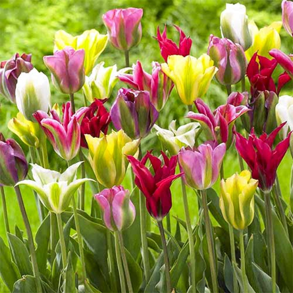 Красоту зеленых цветов может оценить только высокий эстет, художественная красота этих тюльпанов настолько утонченная и необыкновенная, что во время цветения ими невозможно налюбоваться. В наборе подобраны оригинальные сорта с зелеными полосами и пятнами по розовым, белым, желтым или красным бокалам. Зеленые художественные мазки нанесены на лепестки, сомкнутый бутон похож на диковинный цветок из фантастического сна.